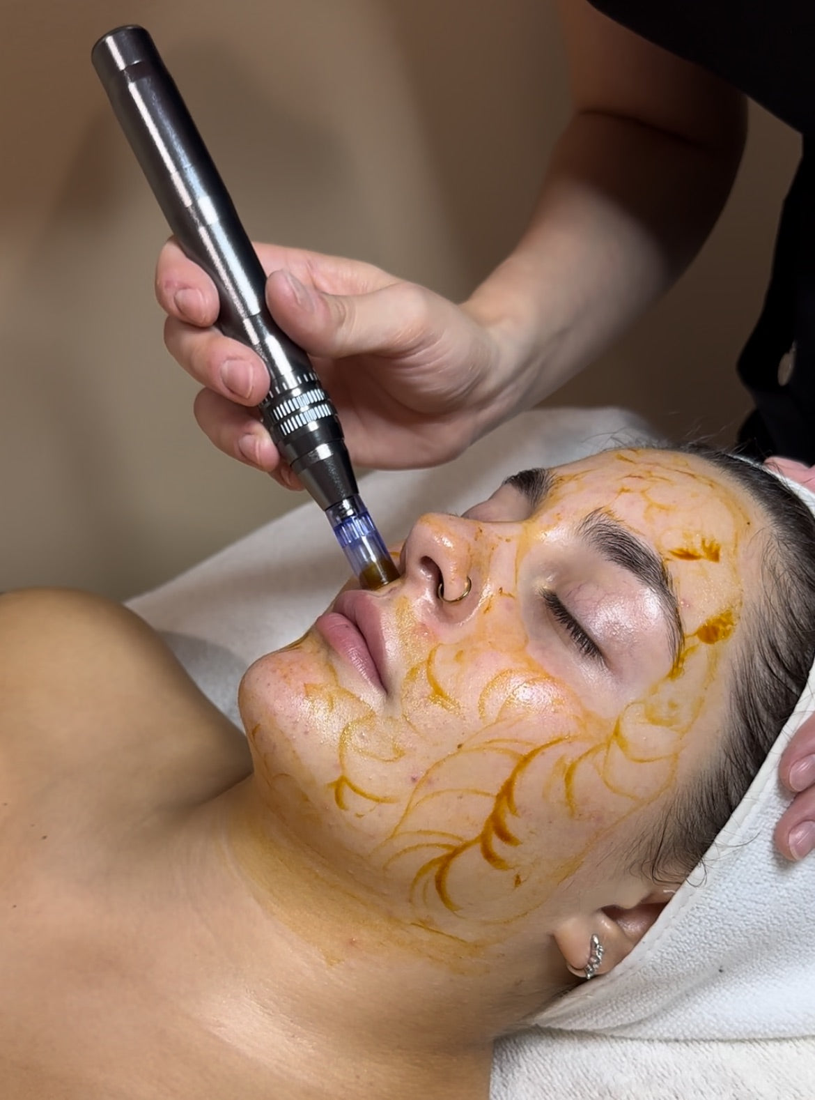 The retinal infusion uses a pure vitamin A formula mixed with other hand picked active ingredients to target your skin concerns. The cocktail is penetrated into the skin via microchanneling, which creates “channels” in the skin from intense vibration to further product penetration with virtually no sensation.