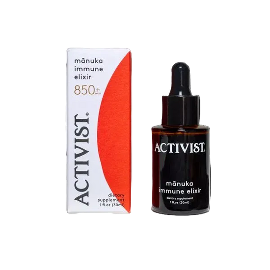 ACTIVIST Mānuka Elixir is to be used for immune support and maintenance. Infused with our Raw Mānuka Honey 850+MGO; this alchemic ambrosia works symbiotically to restore and nourish the immune system with herbs and adaptogens, under a base of deionized water and vegetable glycerine. Safe for the entire family, apart from infants under 12months of age. Alcohol free.
