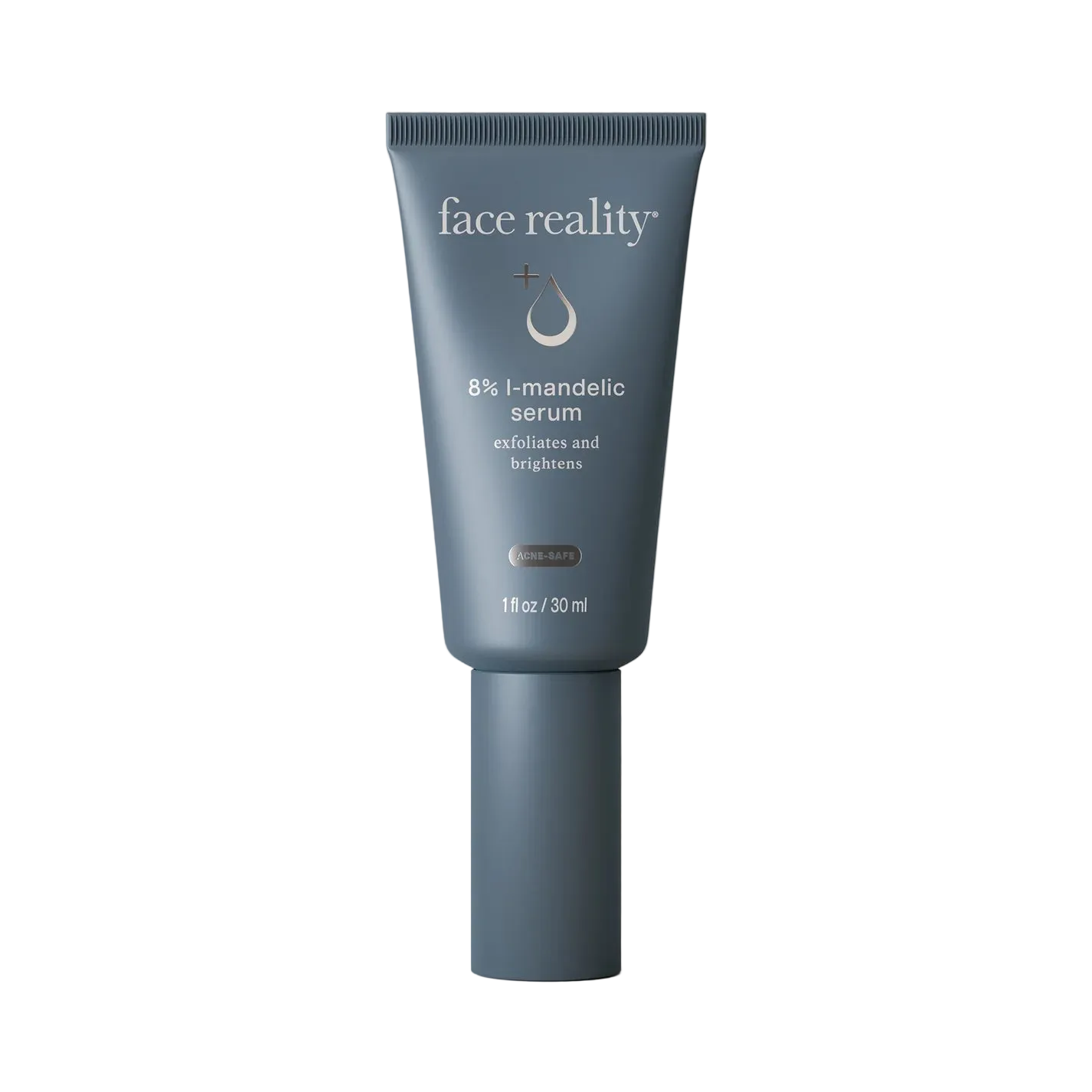 Our gold standard 8% L-Mandelic Serum is an alpha hydroxy acid serum that contains the chirally correct versions of both l-mandelic acid and l-lactic acid. L-Mandelic acid has a larger molecular weight than other alpha hydroxy acids slowing down epidermal penetration resulting in a more even exfoliation with less irritation.