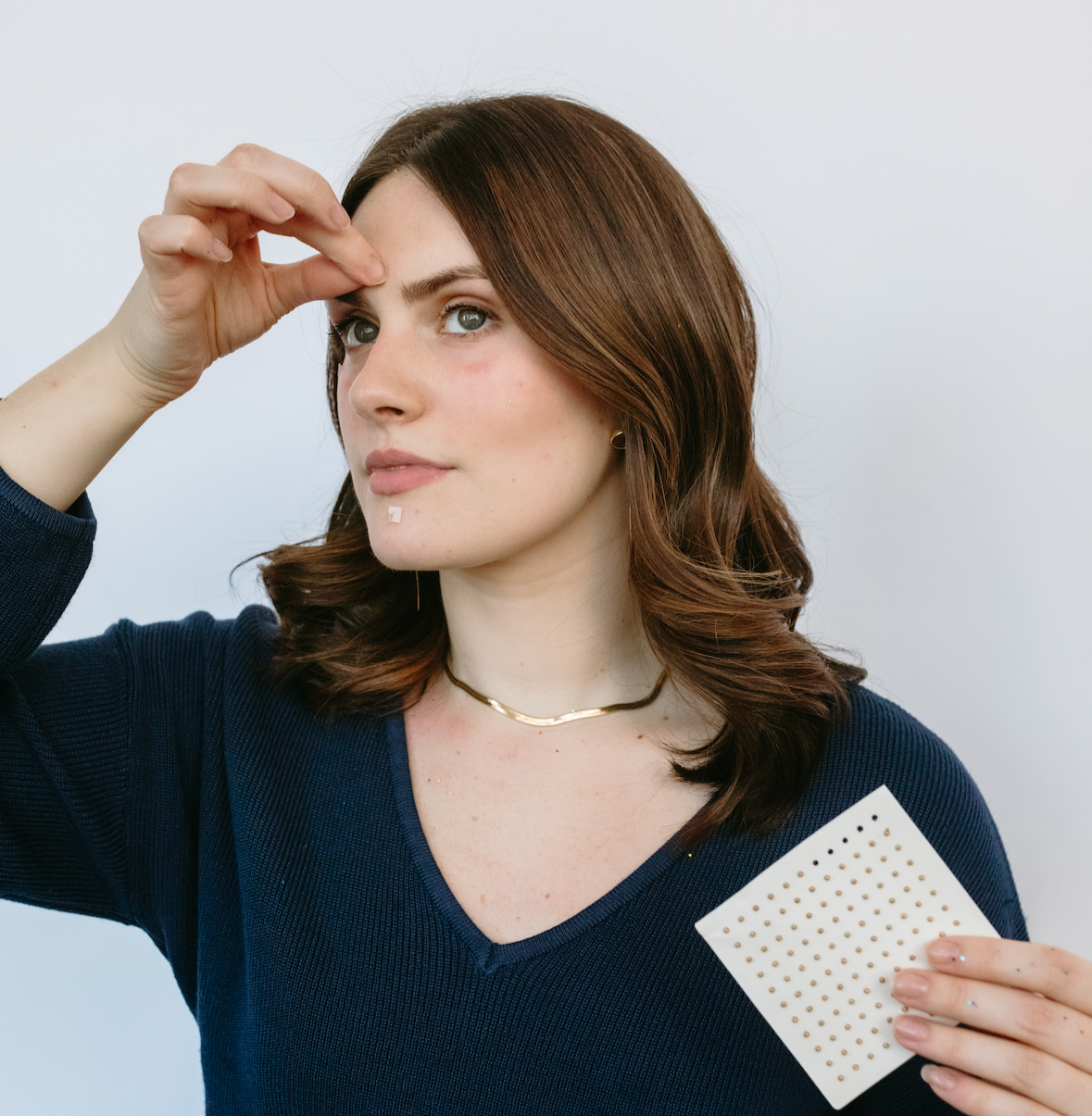 The Qi beauty Home Kit uses Qi beauty STIMS (gold coated micro-magnet) on hypo-allergenic adhesive patches which hold the micro-magnet touching the skin.